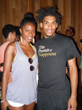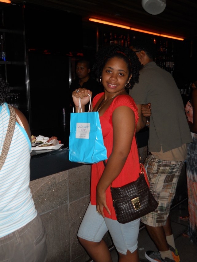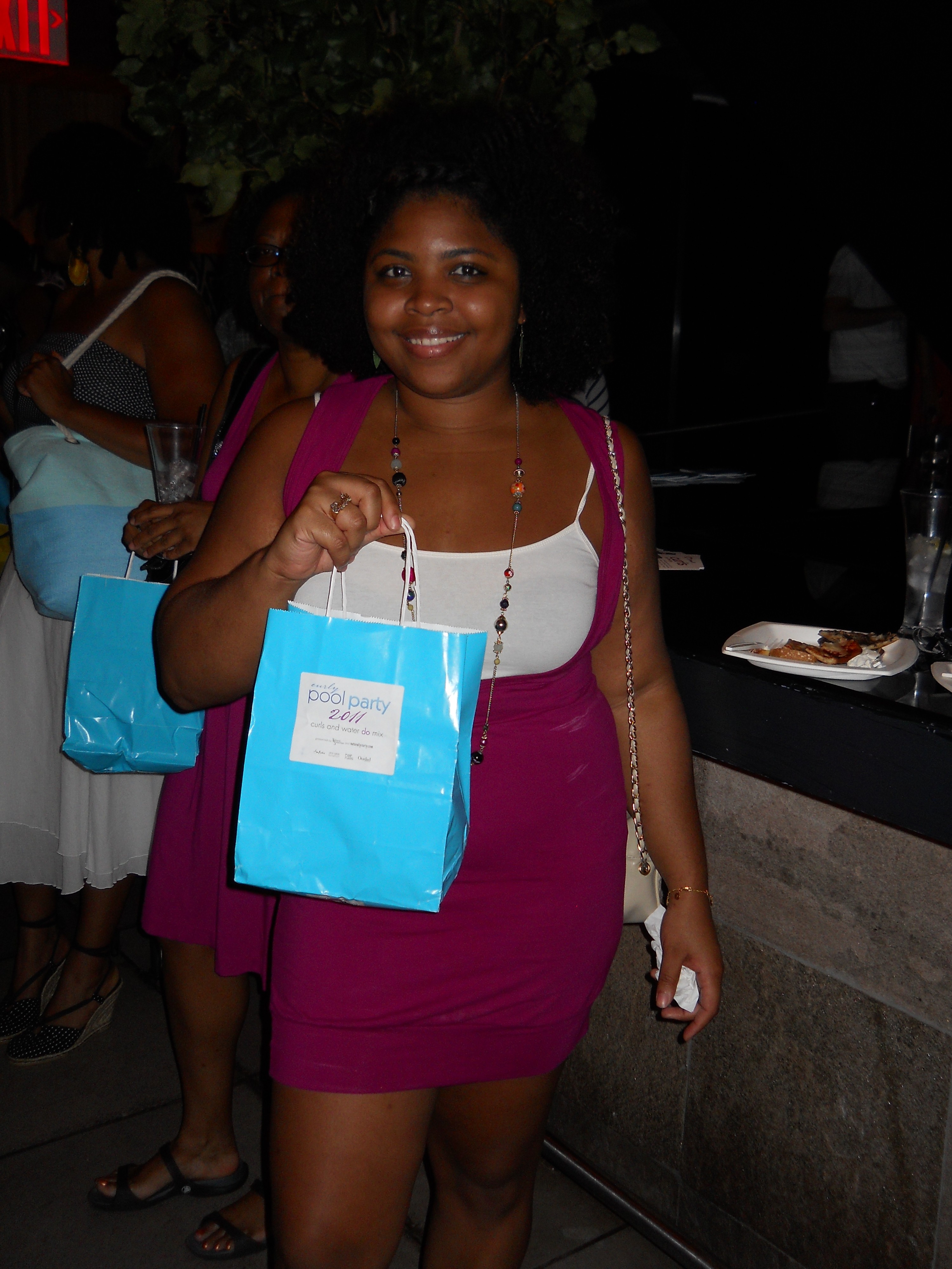 Last saturday, my baby sister, Rhy and I headed over to the naturallycurly.com Pool party where we sipped on drinks, met fellow natural divas, ate and got advice on how to maintain our mane. There I was introduced to Ouidad, a curly hair product, I never heard of before. One of the consultants talked to us about which of their products worked best for our hair and even did demonstration on Tina’s hair (baby sis). Thankfully our goodie bag included their climate control heat & humidity gel, and after trying it out I must say, I LOVE IT!!! Below are pics from the event. Go to http://www.ouidad.com to look up their products and tutorials.