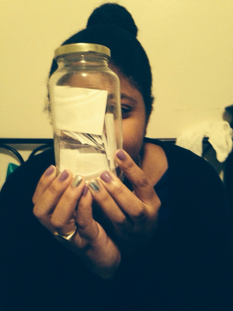 Time flies, memories sometimes fade and you forget the little things, especially the little happy things. Last year I decided to keep a jar of notes. In other words a jar filled with notes written to myself of all of the good things. On December 31st, I opened my jar and had 20 notes waiting for me. They brought me back to a happy place and reminded me of things that I needed to be thankful for. Some of the notes read “I am not angry anymore”, “my goals have taken me to new highs and I am confident that I will reach them as long as I stay on the path that I’ve constructed for myself” and my personal favorite “I’ve done everything I possibly can to make myself happy and I am finally happy”. I loved the idea so much that I decided to keep it as an annual tradition and invited my best friends and younger to participate.
